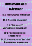 Tänavune sügisvaheaeg on täis vahvaid ja lustakaid üritusi. Noortekeskus on avatud tavapärastel aegadel, kella 12:00-18:00. Esmaspäeval (19.10) ja reedel (23.10) on noortekeskus suletud, kuid sellegipoolest leidub palju tegevusi teistel päevadel!